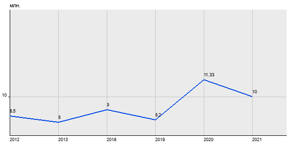 8.5 млн. руб, а в 2021 году - 10 млн. руб. Таким образом, средняя стоимость двухкомнатных квартир в районе "Отрадное" за