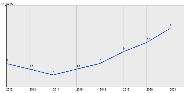 5 млн. руб, а в 2021 году - 8 млн. руб. Таким образом, средняя стоимость однокомнатных квартир в районе "Вешняки" за