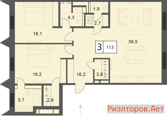 Рыночная стоимость квартиры: 101,890 млн руб.