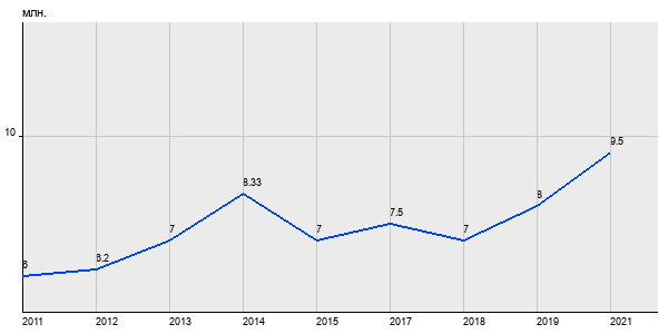 6 млн. руб, а в 2021 году - 9.5 млн. руб. Таким образом, средняя стоимость двухкомнатных квартир в районе "Бутырский" за