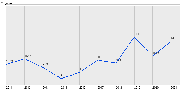 10.33 млн. руб, а в 2021 году - 14 млн. руб. Таким образом, средняя стоимость двухкомнатных квартир в районе "Отрадное" за