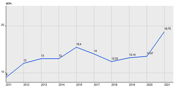 9 млн. руб, а в 2021 году - 18.75 млн. руб. Таким образом, средняя стоимость однокомнатных квартир в районе "Тропарёво-Никулино" за