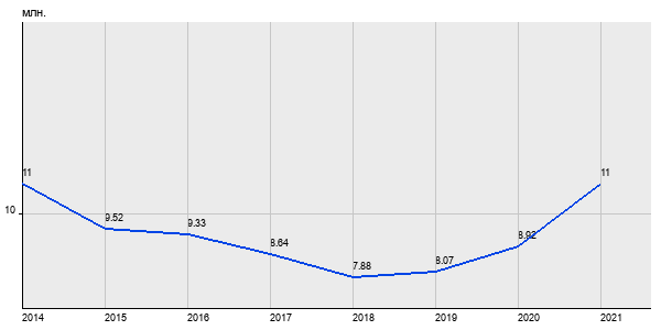 11 млн. руб, а в 2021 году - 11 млн. руб. Таким образом, средняя стоимость однокомнатных квартир в районе "Северное Измайлово" за