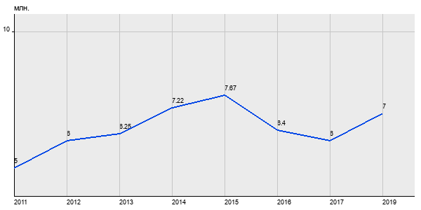 5 млн. руб, а в 2019 году - 7 млн. руб. Таким образом, средняя стоимость двухкомнатных квартир в районе "Зюзино" за