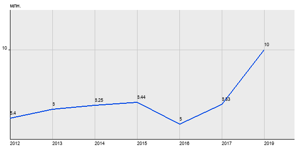 5.4 млн. руб, а в 2019 году - 10 млн. руб. Таким образом, средняя стоимость двухкомнатных квартир в районе "Перово" за