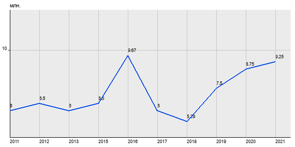 6 млн. руб, а в 2021 году - 9.25 млн. руб. Таким образом, средняя стоимость двухкомнатных квартир в районе "Южнопортовый" за