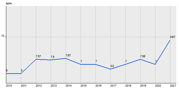 6 млн. руб, а в 2021 году - 9.67 млн. руб. Таким образом, средняя стоимость двухкомнатных квартир в районе "Зябликово" за