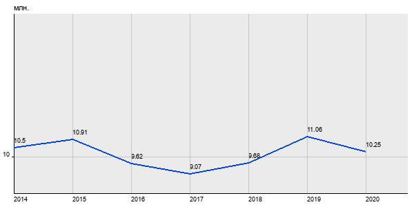 10.5 млн. руб, а в 2020 году - 10.25 млн. руб. Таким образом, средняя стоимость двухкомнатных квартир в районе "Люблино" за