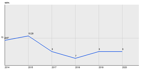 9.67 млн. руб, а в 2020 году - 8 млн. руб. Таким образом, средняя стоимость двухкомнатных квартир в районе "Черёмушки" за