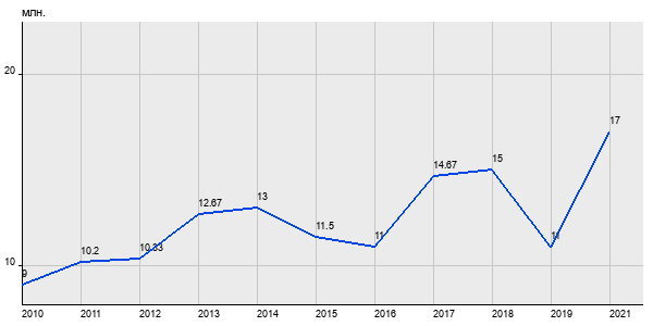 9 млн. руб, а в 2021 году - 17 млн. руб. Таким образом, средняя стоимость двухкомнатных квартир в районе "Хамовники" за