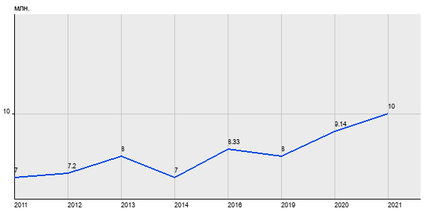 7 млн. руб, а в 2021 году - 10 млн. руб. Таким образом, средняя стоимость двухкомнатных квартир в районе "Чертаново Южное" за