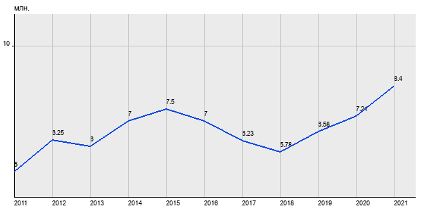 5 млн. руб, а в 2021 году - 8.4 млн. руб. Таким образом, средняя стоимость однокомнатных квартир в районе "Нижегородский" за