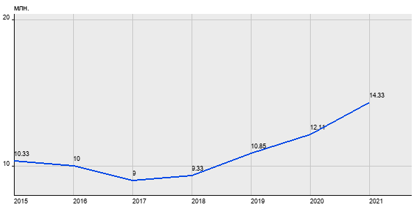 10.33 млн. руб, а в 2021 году - 14.33 млн. руб. Таким образом, средняя стоимость двухкомнатных квартир в районе "Обручевский" за