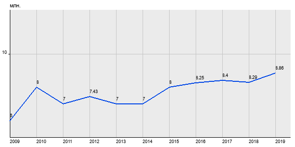 6 млн. руб, а в 2019 году - 8.86 млн. руб. Таким образом, средняя стоимость двухкомнатных квартир в районе "Нагатино-Садовники" за