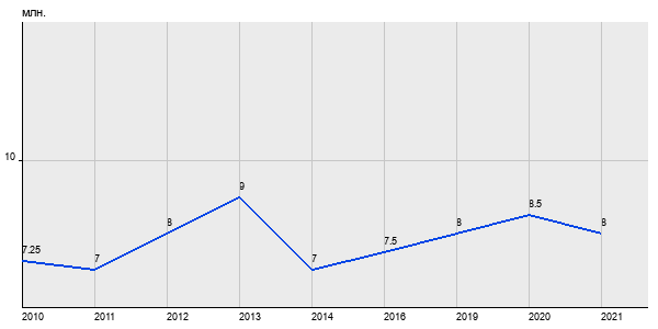 7.25 млн. руб, а в 2021 году - 8 млн. руб. Таким образом, средняя стоимость двухкомнатных квартир в районе "Лосиноостровский" за