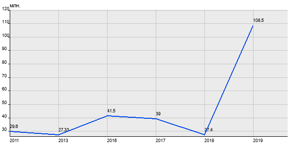 29.6 млн. руб, а в 2019 году - 108.5 млн. руб. Таким образом, средняя стоимость четырёхкомнатных квартир в районе "Дорогомилово" за