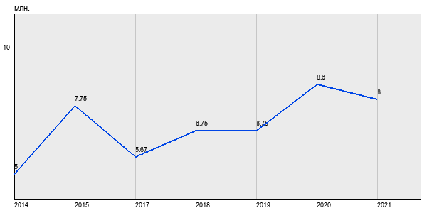 5 млн. руб, а в 2021 году - 8 млн. руб. Таким образом, средняя стоимость однокомнатных квартир в районе "Марьина Роща" за