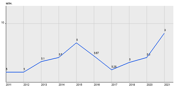 5 млн. руб, а в 2021 году - 9 млн. руб. Таким образом, средняя стоимость однокомнатных квартир в районе "Бабушкинский" за