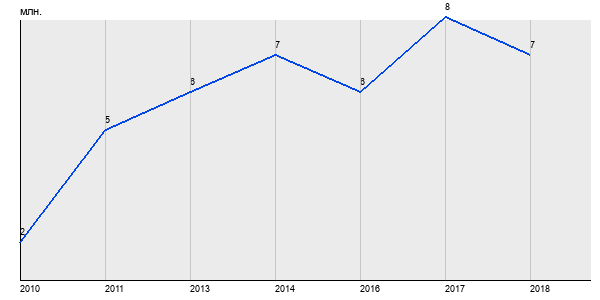 2 млн. руб, а в 2018 году - 7 млн. руб. Таким образом, средняя стоимость двухкомнатных квартир в районе "Зюзино" за