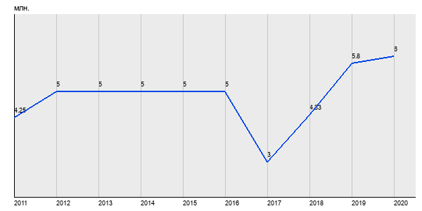 4.25 млн. руб, а в 2020 году - 6 млн. руб. Таким образом, средняя стоимость однокомнатных квартир в районе "Чертаново Южное" за