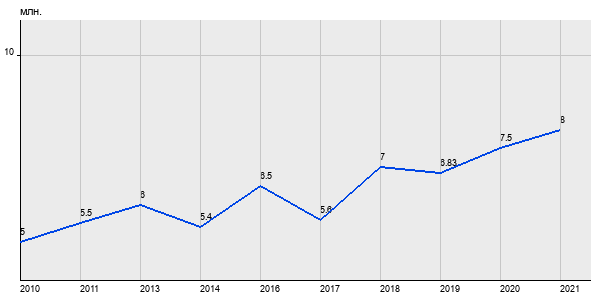 5 млн. руб, а в 2021 году - 8 млн. руб. Таким образом, средняя стоимость однокомнатных квартир в районе "Лосиноостровский" за