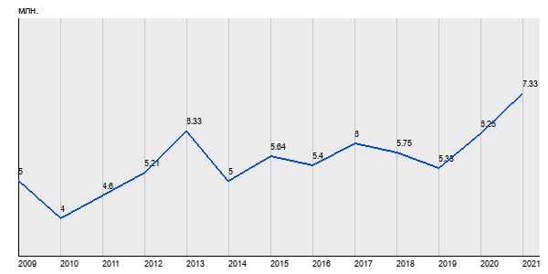 5 млн. руб, а в 2021 году - 7.33 млн. руб. Таким образом, средняя стоимость однокомнатных квартир в районе "Измайлово" за