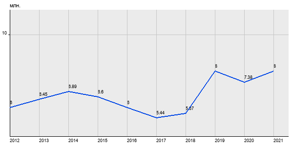 6 млн. руб, а в 2021 году - 8 млн. руб. Таким образом, средняя стоимость однокомнатных квартир в районе "Орехово-Борисово Северное" за