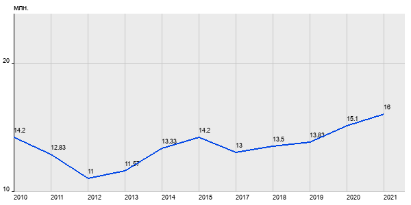 14.2 млн. руб, а в 2021 году - 16 млн. руб. Таким образом, средняя стоимость двухкомнатных квартир в районе "Красносельский" за