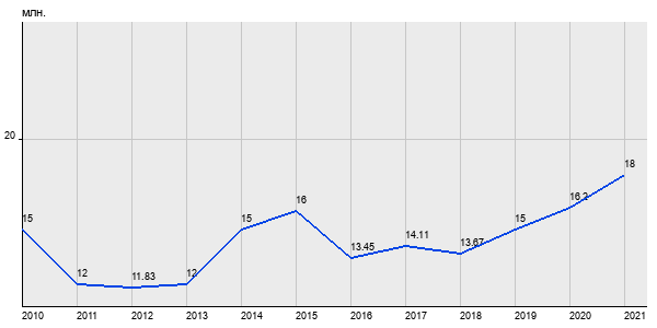 15 млн. руб, а в 2021 году - 18 млн. руб. Таким образом, средняя стоимость трёхкомнатных квартир в районе "Марьино" за