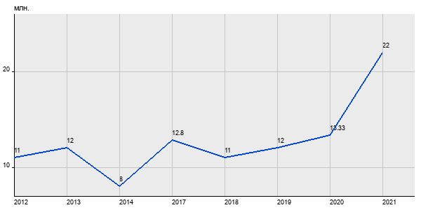 11 млн. руб, а в 2021 году - 22 млн. руб. Таким образом, средняя стоимость двухкомнатных квартир в районе "Басманный" за
