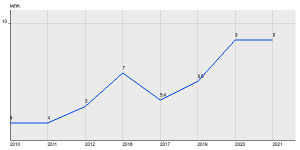 4 млн. руб, а в 2021 году - 9 млн. руб. Таким образом, средняя стоимость однокомнатных квартир в районе "Выхино-Жулебино" за
