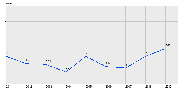 7 млн. руб, а в 2019 году - 7.67 млн. руб. Таким образом, средняя стоимость двухкомнатных квартир в районе "Чертаново Северное" за