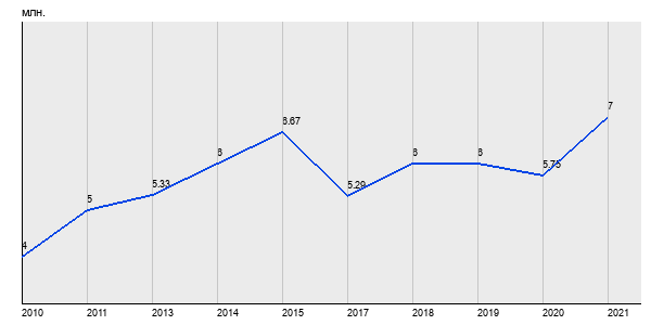 4 млн. руб, а в 2021 году - 7 млн. руб. Таким образом, средняя стоимость однокомнатных квартир в районе "Люблино" за