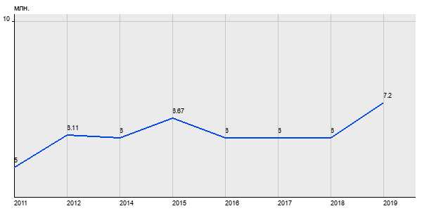 5 млн. руб, а в 2019 году - 7.2 млн. руб. Таким образом, средняя стоимость однокомнатных квартир в районе "Орехово-Борисово Северное" за