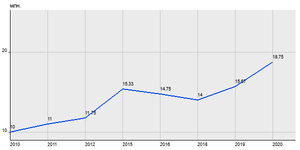 10 млн. руб, а в 2020 году - 18.75 млн. руб. Таким образом, средняя стоимость однокомнатных квартир в районе "Тверской" за