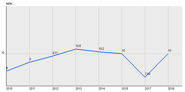 8 млн. руб, а в 2019 году - 10 млн. руб. Таким образом, средняя стоимость двухкомнатных квартир в районе "Войковский" за