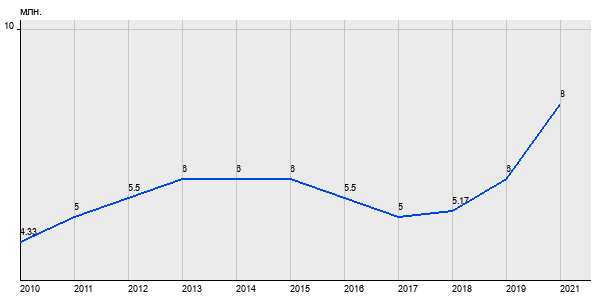 4.33 млн. руб, а в 2021 году - 8 млн. руб. Таким образом, средняя стоимость однокомнатных квартир в районе "Лианозово" за