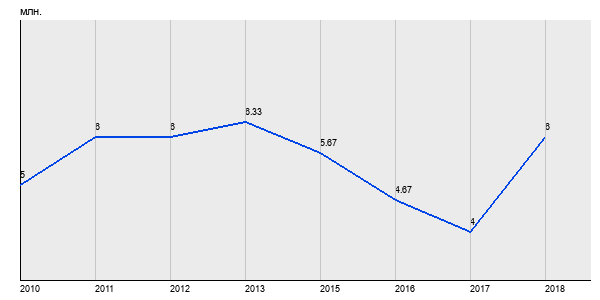5 млн. руб, а в 2018 году - 6 млн. руб. Таким образом, средняя стоимость однокомнатных квартир в районе "Отрадное" за