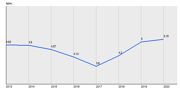 4.83 млн. руб, а в 2020 году - 5.15 млн. руб. Таким образом, средняя стоимость однокомнатных квартир в районе "Южное Бутово" за