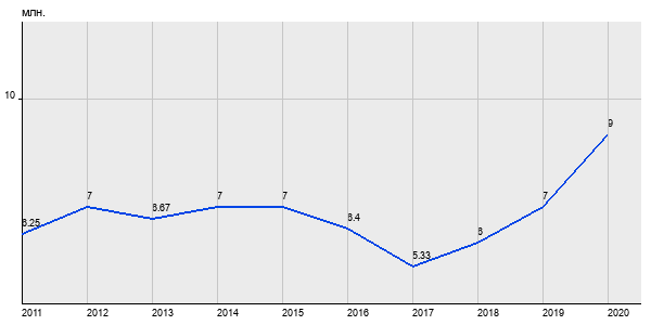 6.25 млн. руб, а в 2020 году - 9 млн. руб. Таким образом, средняя стоимость двухкомнатных квартир в районе "Преображенское" за