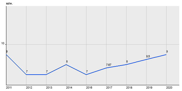 9 млн. руб, а в 2020 году - 9 млн. руб. Таким образом, средняя стоимость двухкомнатных квартир в районе "Орехово-Борисово Южное" за