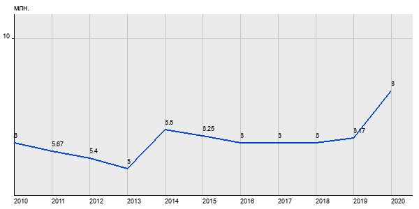 6 млн. руб, а в 2020 году - 8 млн. руб. Таким образом, средняя стоимость двухкомнатных квартир в районе "Кузьминки" за
