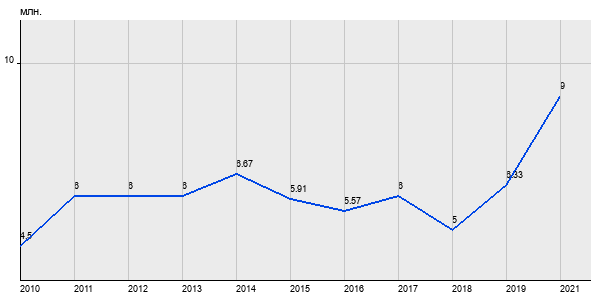4.5 млн. руб, а в 2021 году - 9 млн. руб. Таким образом, средняя стоимость однокомнатных квартир в районе "Тёплый Стан" за