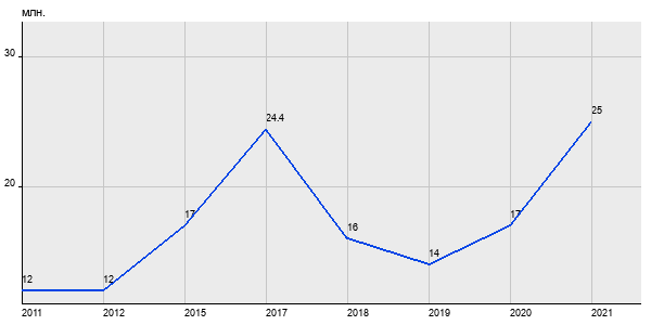 12 млн. руб, а в 2021 году - 25 млн. руб. Таким образом, средняя стоимость двухкомнатных квартир в районе "Сокол" за