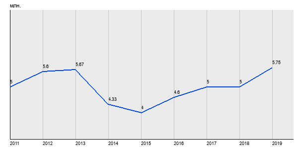 5 млн. руб, а в 2019 году - 5.75 млн. руб. Таким образом, средняя стоимость однокомнатных квартир в районе "Выхино-Жулебино" за