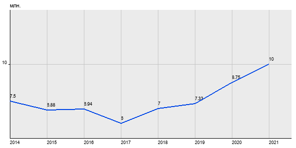 7.5 млн. руб, а в 2021 году - 10 млн. руб. Таким образом, средняя стоимость однокомнатных квартир в районе "Строгино" за