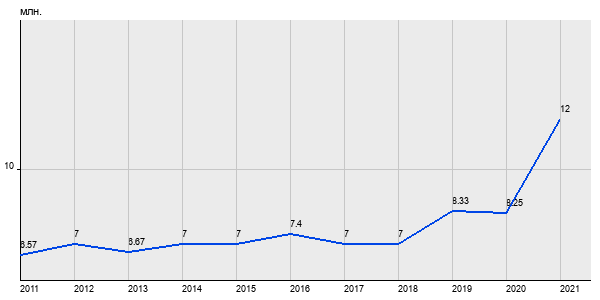 6.57 млн. руб, а в 2021 году - 12 млн. руб. Таким образом, средняя стоимость двухкомнатных квартир в районе "Ново-Переделкино" за