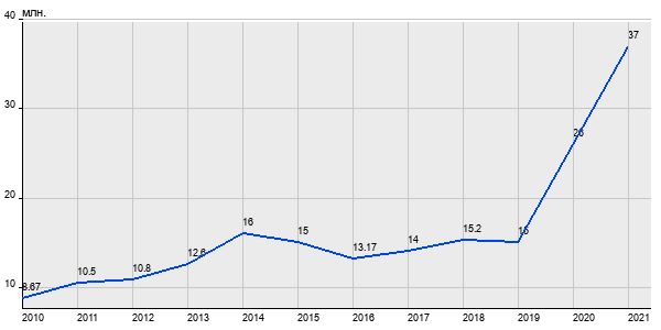 8.67 млн. руб, а в 2021 году - 37 млн. руб. Таким образом, средняя стоимость двухкомнатных квартир в районе "Пресненский" за