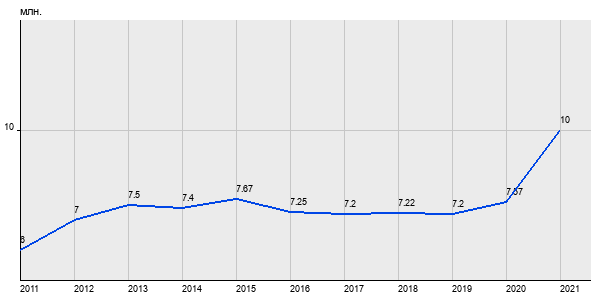 6 млн. руб, а в 2021 году - 10 млн. руб. Таким образом, средняя стоимость однокомнатных квартир в районе "Строгино" за