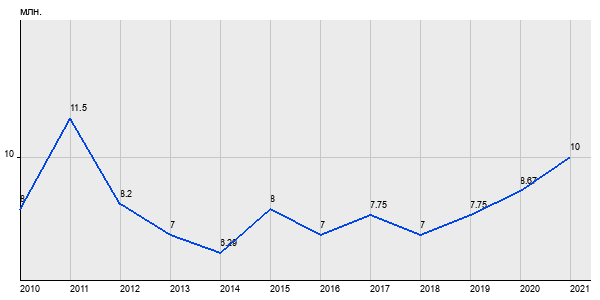 8 млн. руб, а в 2021 году - 10 млн. руб. Таким образом, средняя стоимость двухкомнатных квартир в районе "Отрадное" за